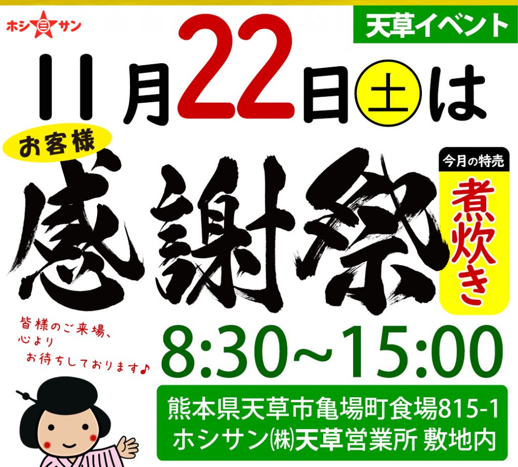 11月22日(土)8時30分~15時にお客様感謝祭(@天草営業所)が開催予定です!!
